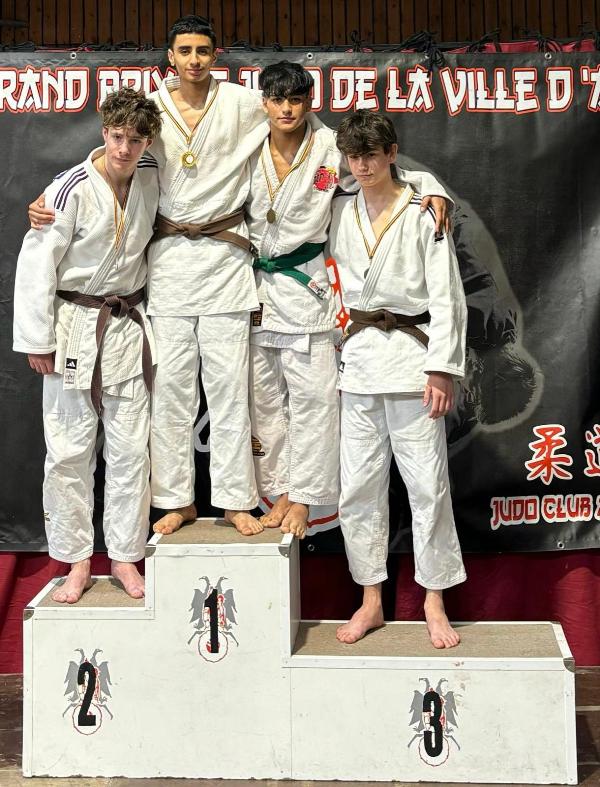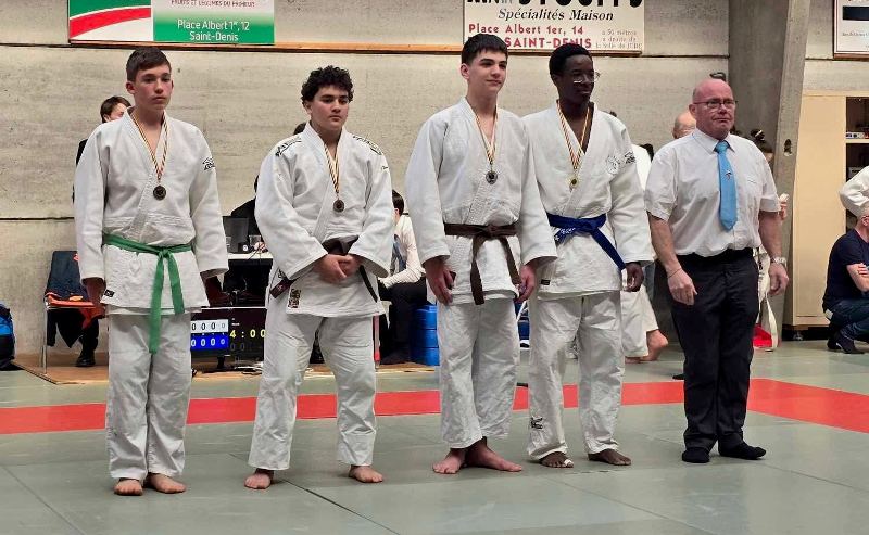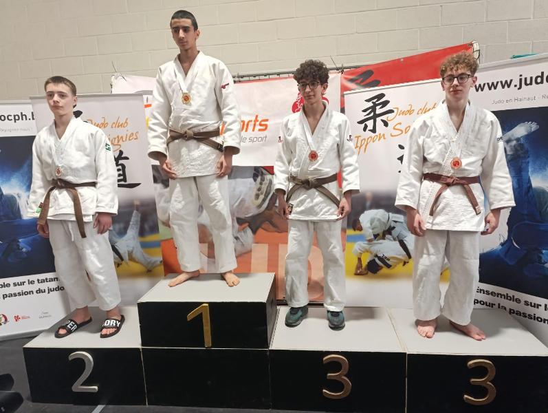 BAHLOUL BILAL termine 3éme, MINET MAXIME -81 termine 5 ème, TRIKILIS NICOLAS