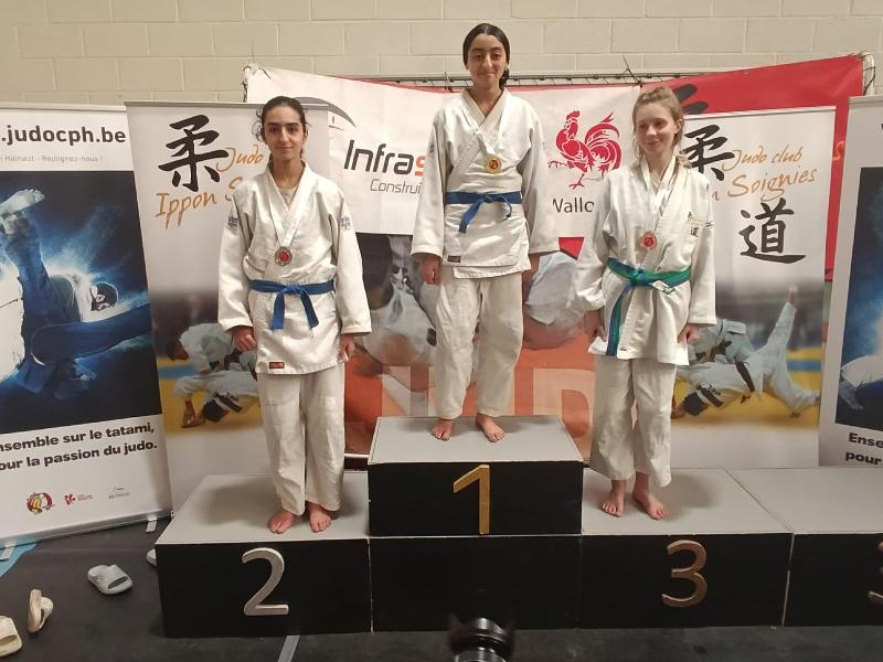 Oulcaid Anass -55, 1ermédaille d’or, Petitjean Clara -63, pas classée,